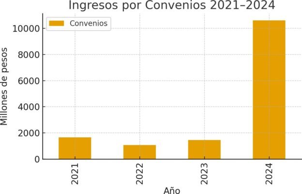 El fortalecimiento de los convenios permitió que los mayores ingresos respaldaran este crecimiento administrativo, asegurando la continuidad de la operación cultural del Fondo.